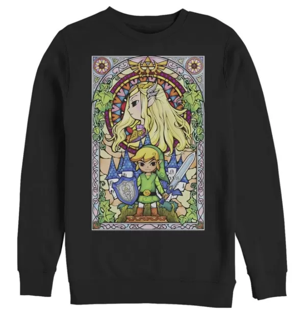 The IGN Store stocks a variety of Zelda apparel, from retro pixel art T-shirts to hoodies and crewnecks featuring iconic designs. Highlights include the vibrant Wind Waker stained glass crewneck, perfect for fans of all eras.