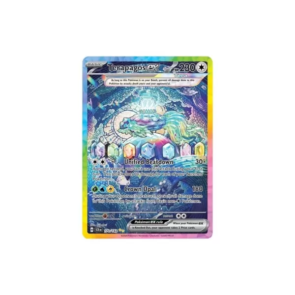 Stellar Crown与令人惊叹的艺术性融合了怀旧,以迷人的观鸟和Bulbasaur卡为特色。该场景还包括令人眼花ter乱的Terapagos Ex,以及有趣的Hydrapple和Dachsbun卡,它们将郁郁葱葱的插图与竞争性可玩性结合在一起。